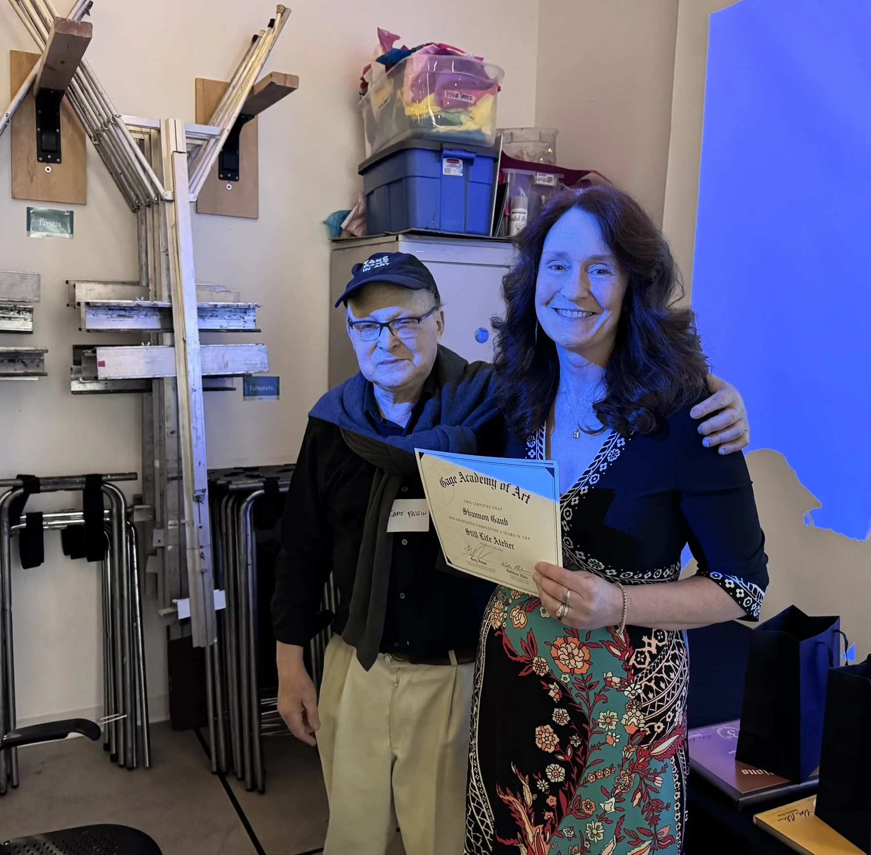 Shannon with instructor Gary Faigin at the Gage Academy of Art Graduation (June 2025)